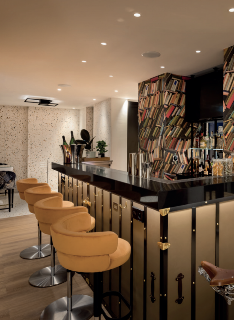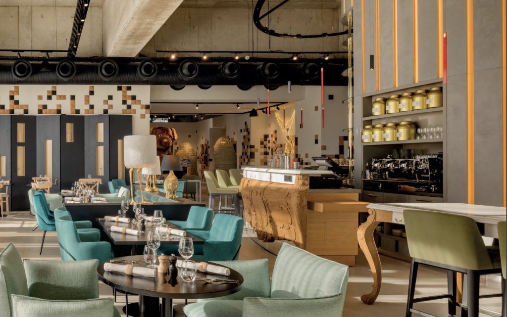 Côté décoration, le FirstName se pare, entre autres, d’un sas végétalisé ainsi que de salons habillés de murs pixellisés de liège. Au beau milieu de ce lieu vivant et écoresponsable de 280 m², s’érige la mascotte Badaboum, un dogue de Bordeaux XXL au poil doux et soyeux qui contemple avec bienveillance chaque hôte.